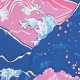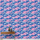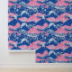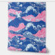 A seamless preppy hand-drawn pattern featuring a rough dark blue ocean with pink waves and white water swirls. The design combines dynamic oceanic elements with a whimsical, artistic touch, creating a bold and vibrant visual effect.