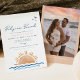 This baby shower invitation features a watercolor ocean sunset, sweet flying birds and a cute gender-neutral orange and blue colour combination. Easily add your own photo onto the backside for a unique personal touch.