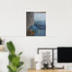 Oceanside seating for two at tiny outdoor cafe, poster