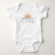 This baby one piece jumper features a watercolor ocean sunset paired with a cute handwritten script font with the words, "beach baby". This one piece baby crawler outfit is the perfect gift for an expecting mum at her baby shower or a cute tropical outfit for your own little one.