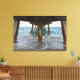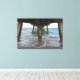 This beautiful print canvas wall art of an oceanview from beneath a pier is a photographic image taken from under The Anglin Fishing Pier in Lauderdale By The Sea, Florida. It is a serene seascape with dramatic architectural detail in silhouette against blue sky and aqua ocean water with the surf and waves rolling in and swirling around the piling. This is original seascape photography by JLW_PHOTOGRAPHY.