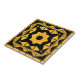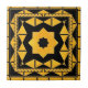 Ceramic tile featuring a stylish geometric pattern in ochre and black with a touch of gold. The image is large enough for both the small or large size tile and will fit nicely in a kitchen or bathroom. Beautiful to combine with plain black and plain ochre tiles for a unique style!