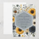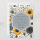 This design features a rich tapestry of ochre-toned blooms and botanical elements. Deep grey and muted yellow flowers intermingle with soft grey foliage, creating a warm and inviting atmosphere for a romantic celebration.