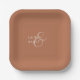 Chic and minimalist. These lovely wedding paper plates feature a couple monogram in ochre colours, against a chic ochre background.