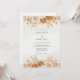 This design features a warm, earthy palette of ochre and cream hues. Delicate floral arrangements, reminiscent of dried botanicals and soft roses, adorn the top and bottom. The overall aesthetic evokes a rustic and natural elegance, perfect for an autumnal celebration.