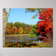 New England Autumn foliage print. Red and yellow leaves photographed near a shallow pond in New Hampshire.
