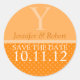 Custom Orange Monogram Wedding Envelope Stickers with names and date perfect for Fall wedding invitations.