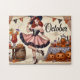 October Retro Pin-Up Girl Jigsaw Puzzle, Vintage Halloween Witch Art, Festive Fall Puzzle