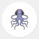 Octopus at Music with Headphone Classic Round Sticker