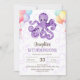 Octopus Balloon Purple Bubble Kids Birthday Invitation