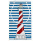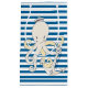 Bright blue and white horizontal pattern design gift bag with a nautical theme features an octopus and silver anchor on front, a red and white lighthouse on back!