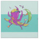 A funny cartoon illustration of a octopus paddling a sea kayak. The kayak has a sail and the cute purple octopus has plenty of arms to hold a water bottle, compass and more.