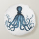 Octopus kraken nautical coastal ocean beach blue round cushion