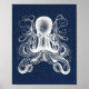 Nautical octopus against a dark blue burlap background. Perfect addition to any nautical themed room.