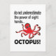 Octopus Tentacle Ocean Animal Funny Octopus Postcard original design by Nisha Prabhu. Dive into the deep blue with our playful Octopus Tentacle Ocean Animal Postcard! Featuring a whimsical design of a friendly octopus showcasing its vibrant, wiggly tentacles, this postcard is guaranteed to bring a smile. Perfect for ocean lovers, marine biologists, or anyone who appreciates a good pun about the wonders of the sea! Send a splash of joy to your friends and family or use it as a quirky piece of décor for your aquarium-themed space. Made with high-quality materials, this postcard captures the beauty and humour of ocean life in a way that’s both charming and unique. Whether you're sending a note from your latest adventure or simply want to brighten someone's day, this octopus is ready to deliver a tentacle of laughter!
