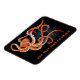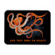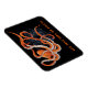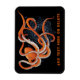 An orange octopus against a backdrop of black. Octopus tentacles in and around bubbles and a blue mandala