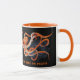 An orange octopus against a backdrop of black. Octopus tentacles in and around bubbles and a blue mandala