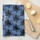 Black octopus pattern kitchen towel with place for a single, monogram initial. Dark blue with black octopus design. When folded to hand, a single, white initial will show.