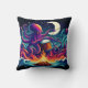 Octopus Playing Drum by Campfire Under Moonlight Cushion