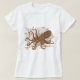 Octopus swimming over a starfish with coral reef in background. Created in browns, beige and orange.