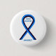 Ocular melanoma uses a black and blue awareness ribbon. Awareness pin features the painting of a blue and black awareness ribbon on a custom button pendant. Black and blue awareness ribbon art lapel pins or buttons can be customised with personalised messages to make great cause buttons for fundraiser pendants for cancer or other causes, awareness pin gifts, or other special pendant events or awareness lapel pin for cause's occasions.