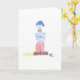5x7 portrait greeting card – I'm Sorry My Dog Peed on Your Garden Gnome - A very angry little gnome (understandably so!) with a yellow puddle next to him and on his leg. So, maybe your dog didn't really do this, and maybe you don't have anything to apologise for, but you never know. It's probably a good idea to have one on hand just in case. Original drawing is coloured pencil on paper, scanned in and placed on the card.