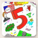 A design dedicated to the number 5! Ode to Five is inspired by the drawings junior high and high school students doodle on their notebooks and binders with pen and marker - and themed around the number 5! A big 5, a five dollar bill, a nickel, Beethoven's 5th, a hand, the French and Spanish words for 5, 5-card stud poker hand, and even James Madison - America's fifth president - all decorate this unique coaster. So celebrate the number 5 with this spectacularly fun design! Design was hand-sketched in pencil and pen and digitally coloured with marker-pen. Original design by Sunny. Copyright 2012