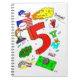 A design dedicated to the number 5! Ode to Five is inspired by the drawings junior high and high school students doodle on their notebooks and binders with pen and marker - and themed around the number 5! A big 5, a five dollar bill, a nickel, Beethoven's 5th, a hand, the French and Spanish words for 5, 5-card stud poker hand, and even James Madison - America's fifth president - all decorate this unique notebook. So celebrate the number 5 with this spectacularly fun design! Design was hand-sketched in pencil and pen and digitally coloured with marker-pen. Original design by Sunny. Copyright 2012
