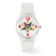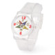 I only have one complaint. I ordered the watch with clear case and strap, and what was sent was white case and strap. I'm going to keep it because 1) it looks very nice in white, and 2) it would take too long to get a replacement made and sent in time for my occasion. Aside from the mix up with the color, the watch does look very good in white. The purple dial is actually sparkly which did not show in the online images. That was a nice surprise. If you like Swatch watches this is very similar to those. It's 33.6mm in diameter, 10.5mm thick, and 40.6mm lug to lug. Stainless steel case back says 3ATM/30m WR, so no swimming or showering or submerging this one. If you like Woodstock, this is a great choice.