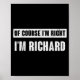 Of Course I'm Right I'm Richard - Funny Richard Na Poster