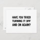 Help desk computer nerds to technical customer service support ask have you tried turning it off and on again? Check out this funny custom design on tees, shirts, mugs, cases, gifts and apparel.