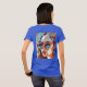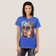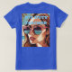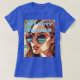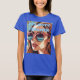 This is an Off Duty Teacher Sunglasses t-shirt. Off Duty Teacher is on the t-shirt in sky blue text. The women's t-shirt is a Women's Basic T-Shirt. The teacher and sunglasses design on the t-shirt was created with generative art. A woman is at a beach wearing sunglasses. The t-shirt is a pretty royal blue colour. You can change the text by clicking the Personalise button.