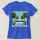 This is a public park Off Duty Teacher T-Shirt. The t-shirt design was created with generative art. The artwork displays a public park during the daytime. The park has two park benches, a sidewalk, a hedge and many trees. The colour of the t-shirt shown is blue. Off Duty Teacher is on the t-shirt in blue script. You can change the text by clicking the Personalise button.
