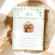 Celebrate the bride who’s fresh off the market with this Off the Market Bridal Shower Modern Farmers Invitation. Designed with a charming sage green gingham background, this whimsical watercolor invitation features vibrant fruits and vegetables alongside orange, yellow, and pink floral accents. Perfect for a modern bridal shower with rustic farmer’s market flair—feel free to reach out if you need help personalising!