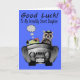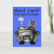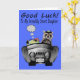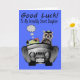 Wish your incredibly smart daughter who's going off to college good luck with an adorable smiling racoon driving a shiny sports car packed full of luggage, books and a sleeping bag. Background is a pretty blue.