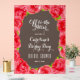 Beautiful large Derby-style bridal shower welcome acrylic sign features watercolor red roses, the wording Off to the Altar and your details in chic lettering on a smoky black transparent background. MATCHING items in our collection.