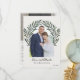 Elegant greenery photo thank you card to send to your wedding guests. Double sided wedding thank you card with two photos, one in an arch shaped frame with greenery in soft shades of fern green and sage green with Love and Thanks in a grey script. Off-white wedding thank you card with your photo inside a greenery arch. Greenery wreath photo thank you cards for the newly weds. Add your own personal thank you message to the back of the double-side photo thank you card.