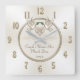 Off White Personalised Monogrammed Wedding Gifts Wedding Clock. Type in their New Family MONOGRAM and their NAMES and Wedding DATE or Your Text or delete it. Beautiful Love Doves, joining their lives together as one, over a pretty taupe Heart clock. CALL Designer Linda: 239-949-9090 to design your personalised wedding gifts in any colours, for any occasion or to place my designs on thousands of products.