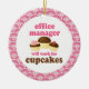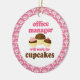 Office Manager ornament has funny will work for cupcakes quote and a trio of cute chocolate cupcakes occupation design. It makes a great Christmas gift idea or retirement gift for a woman or female Office Manager.