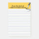 "From the desk of" followed by your name post its are perfect for school, varsity and office use. Organise and colour code your projects, study books and contracts with these easy to peel and stick white "post it" stationery accessories that have a fountain pen with ink set to the right of black templates on bright mustard which have folio notepad horizontal lines in blue below it. IDEAL FOR - Contracts, agreements requiring a clients signature, as a check list of things to do or a daily organiser. CUSTOMIZE IT - Delete, change or personalise the wording
