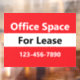 This commercial leasing sign says 'Office Space For Lease'. The text can be changed to show a custom message. Digits for your phone number are at the bottom.