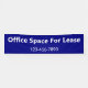 This office space for lease banner is navy blue. The text is white. It says office space for lease in a large font. Office space for lease is above additional text that you can edit to show a custom message such as your phone number.