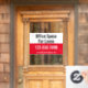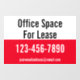 This window cling bright red, black, and white. You can edit the text to meet your needs. You can edit the text at the top to show your custom text (shown: Office Space For Lease) The top half is white with black text. The bottom half is bright red with white text for the company's phone number and email address.