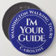 I'm Your Tour Guide. A badge for an official City Tour Guide. Change the wording to your company details. Town Tour Guide badge. Official City Tour Guide badge. Travel and tourism. White wording on a blue background.