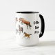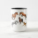 Original design of horses on this customisable coffee mug just for moms who take their kids to riding lessons, horse shows and more horsey venues by designer Carolyn McFann of Two Purring Cats Studio.