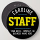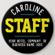 Staff Badge for a hospitality company. Add the name of the Staff Member to create a personal company badge for your employees to wear when with guests. Great hospitality business button badge.