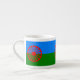 Easily personalise this green and blue official Romani Roma gypsy flag of the Romany gipsies and Travellers with your own text by using the customise menu. The flag represents the green of the earth and the blue of the sky with a traditional gypsy caravan vardo wagon wheel, representing travel.