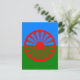 Easily personalise this green and blue official Romani Roma gypsy flag of the romany gipsies & travellers with your own text by using the customise menu. The flag represents the green of the earth and the blue of the sky with a traditional gypsy caravan vardo wagon wheel,representing travel.
