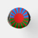 The official Romany gypsy travelers flag of the Roma gipsies with a green and blue background representing the sky and earth with a bright red mandala wagon wheel representing travel, and personalised text templates easily change the text or add your name to create to your own custom flag design.