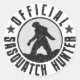 A distressed version in black white and grey, of our Official Sasquatch Hunter logo style design. Grungy, crayon type colouring of a bigfoot inside a circle, with rounded and fitted text around it. Perfect for those of you who believe in bigfoot and like to head out into the bush to go squatchin.
